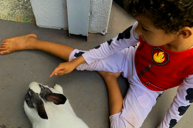 Durante o evento na Clínica TEIA, as crianças puderam experimentar momentos de interação com os cães e coelhos do Sorria, é Pet Terapia!, participar de sessões de brincadeiras motoras e sensoriais, além de receber acolhimento e atenção individualizada.