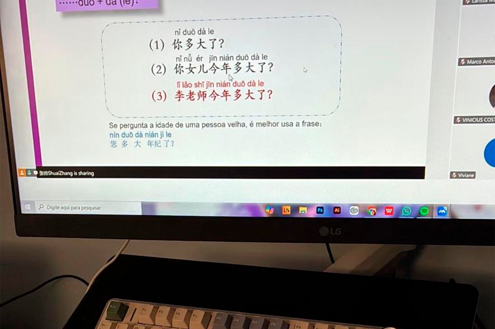 “Sempre tive interesse em aprender a língua chinesa, especialmente porque, no meu tempo livre, gosto muito de assistir filmes e novelas asiáticas. Além disso, vivemos um momento em que muitos jogos produzidos na China têm ganhado destaque na cultura pop, o que aumentou ainda mais minha curiosidade em compreender a cultura por trás das mídias que consumo”, compartilha a Professora.